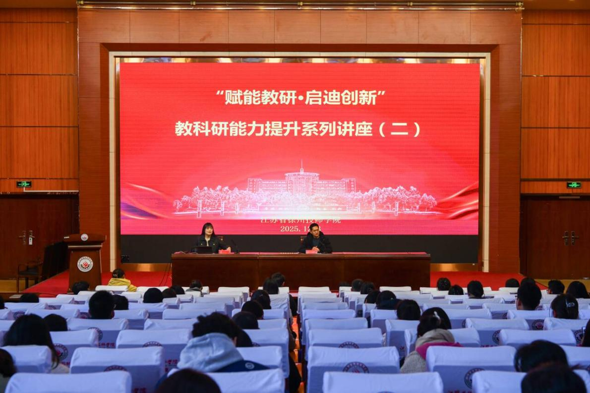 12月3日,我校在学校报告厅举办“赋能教研·启迪创新”教科研能力提升系列第二次讲座。本次活动特邀徐州经贸高等职业学校教育科研处处长、三级教授王倩担任主讲嘉宾。王倩教授同时担任江苏联合职业技术学院电子商务专业建设指导委员会秘书长、教育部职业教育教学基础专家库成员,还是江苏省高校“青蓝工程”中青年学术带头人以及优秀青年骨干教师,在教科研领域造诣深厚。副校长卞波出席活动,教务处工作人员及各二级学院专业教师共同参与此次培训。