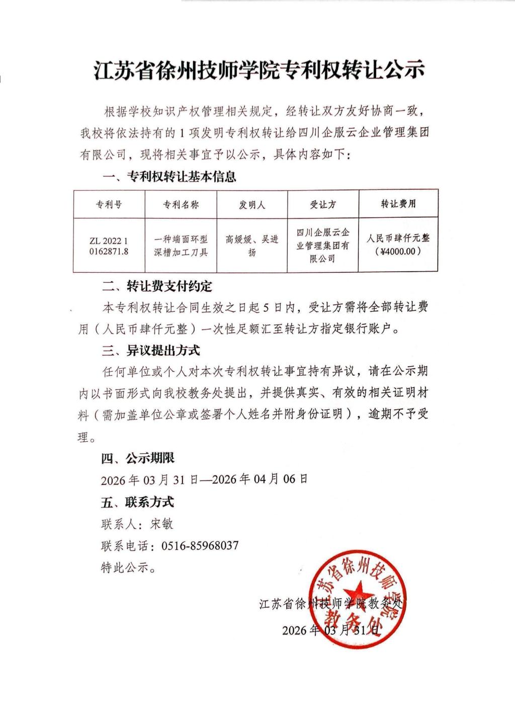 江苏省徐州技师学院专利权转让公示